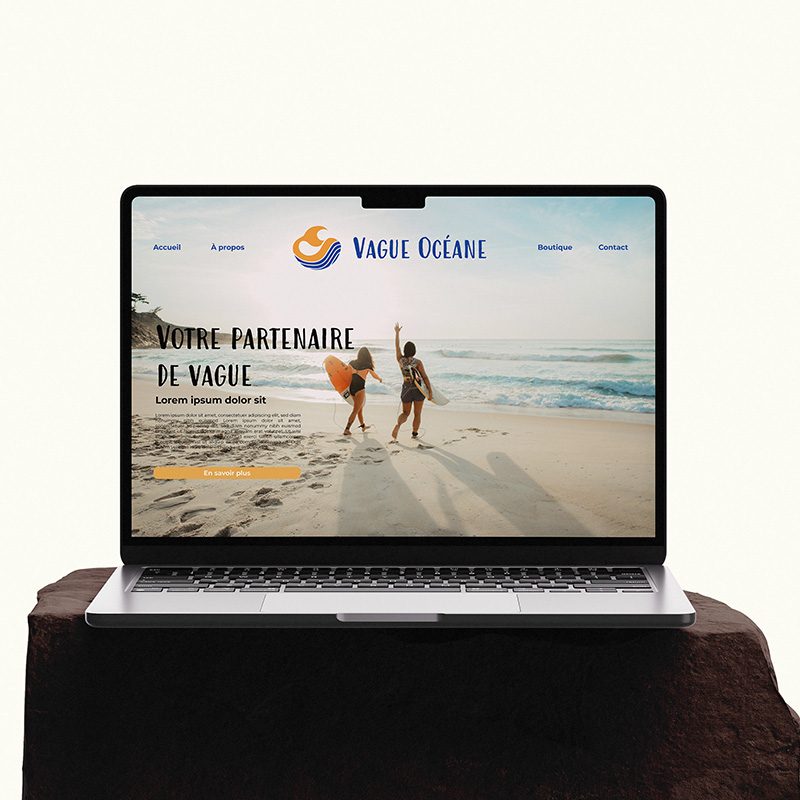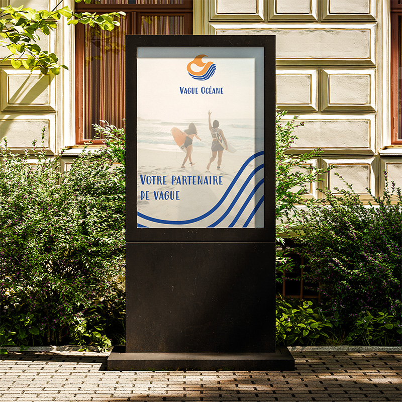 Le logotype de Vague Océane est composé d’un symbole et du nom de la marque, se superposant de manière équilibrée.